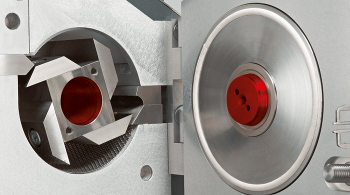 Vzorek je rozmělněn na principu stříhání nůžkami, stále jemněji mezi noži rotoru a pevnými noži, dokud není dosaženo požadované konečné jemnosti. Jedinečná geometrie mlecí komory: Mlecí komora je navržena s minimálním mrtvým prostorem a progresivní geometrií řezu mezi rotorem a pevnými noži. Materiál vzorku se během drcení nepřetržitě pohybuje a nemůže se nikde usazovat. Ve spojení se speciálním prouděním vzduchu je to základ pro rychlý provoz bez ucpání a rychlé čištění beze zbytků.