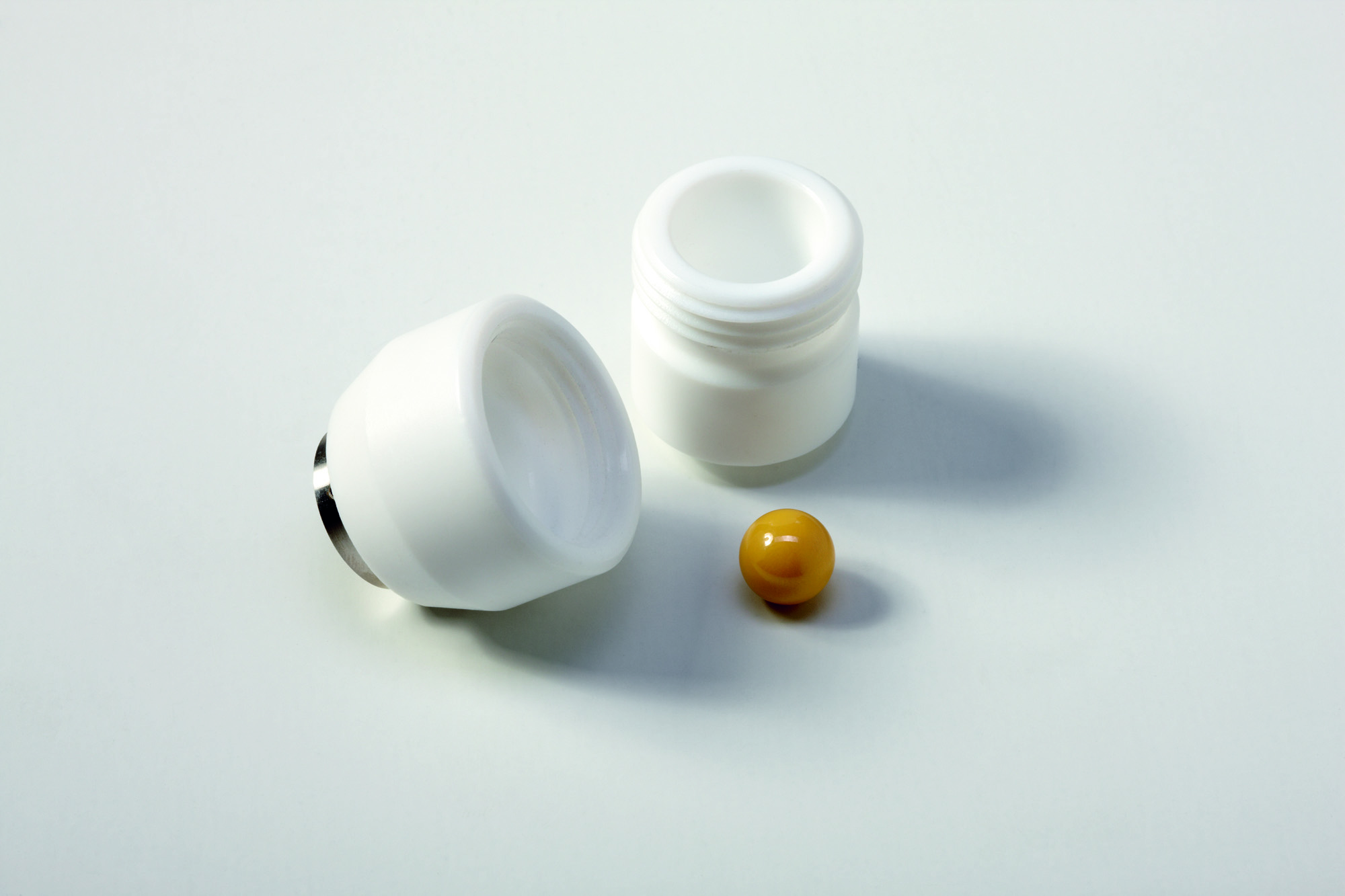 Mini-mlýn P-23 pracuje s mlecí nádobou a mlecími kuličkami. Abychom zabránili nežádoucímu znečištění vzorku v důsledku oděru, nabízíme výběr ze 3 různých materiálů. Obvykle se používají mlecí nádoby a mlecí kuličky ze stejného materiálu. K dispozici jsou také mlecí nádoby a mlecí kuličky z oxidu zirkoničitého pro mletí zcela bez obsahu kovů.