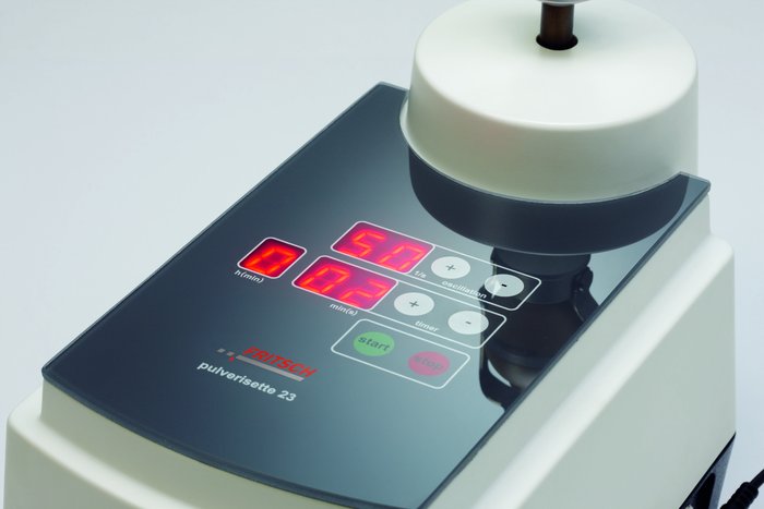 Mlýn FRITSCH Mini-Mill P-23 rozemele vzorek pomocí nárazů a tření mezi mlecími kuličkami a vnitřní stěnou mlecí nádoby. K tomu dochází díky vertikálním kmitavým pohybům mlecí nádoby s frekvencí 900–3 000 kmitů za minutu a amplitudou 9 mm.